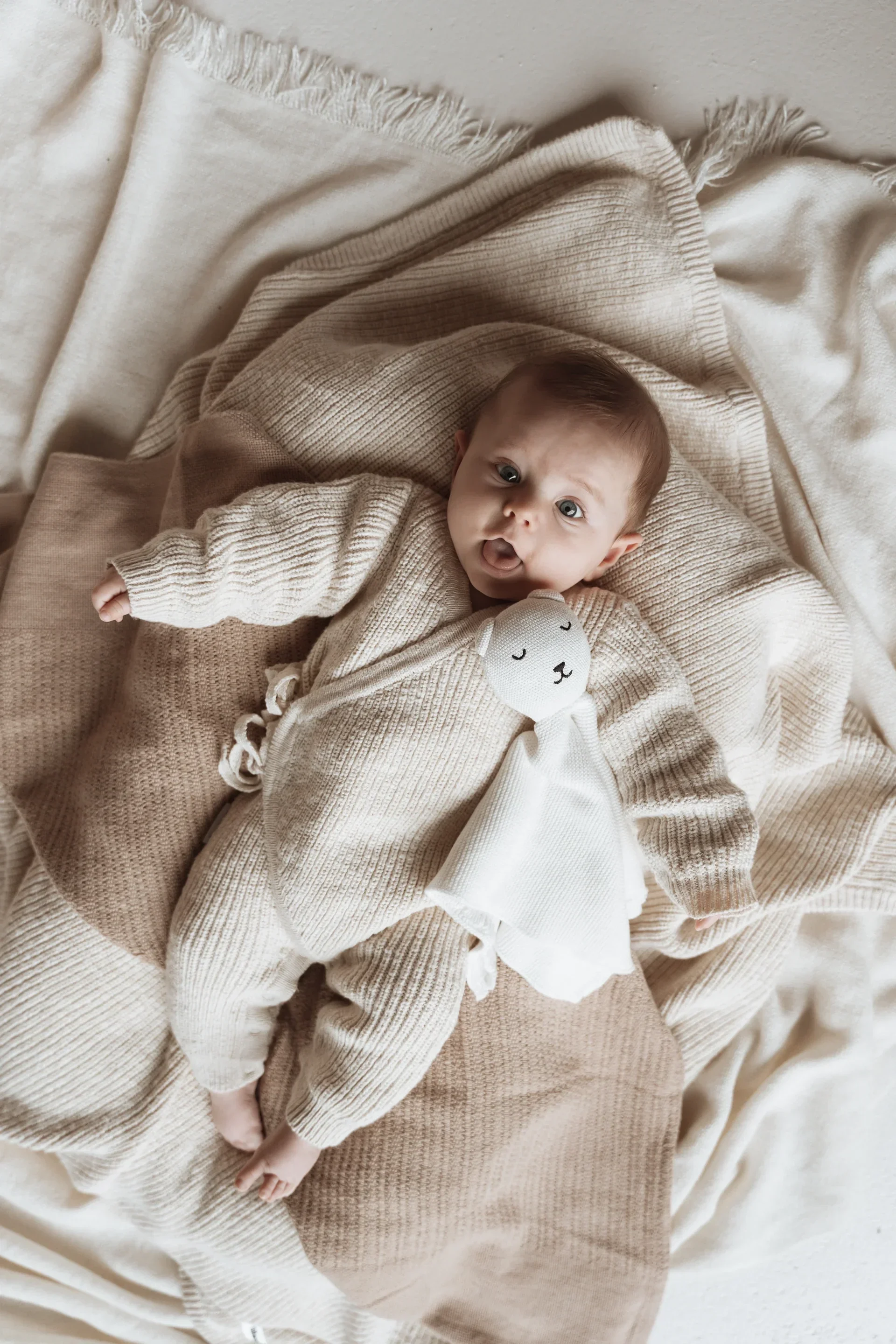 Deze baby romper is een comfortabel en trendy kledingstuk dat perfect is voor die bijzondere momenten met je kleintje. Deze romper valt op door de luxe afwerking en zijn dikke en duurzame ontwerp. Het zachte breisel groeit daarnaast mee met je baby, waardoor de romper perfect is voor beweeglijke peuters en nog jaren gedragen kan worden! De drukknoopjes zorgen voor een gemakkelijke luierwissel.