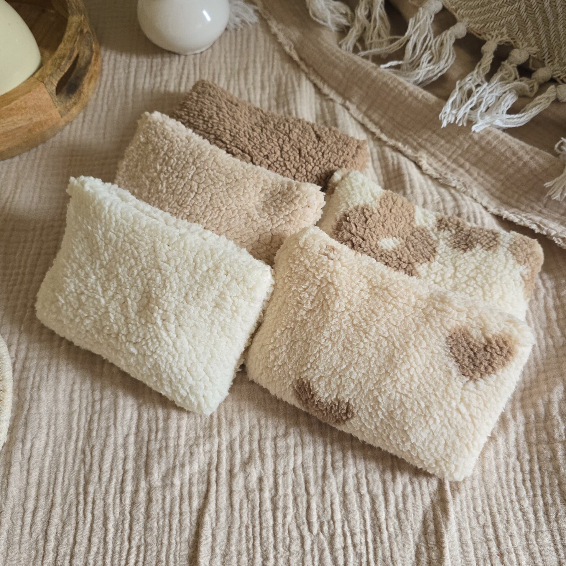 - De set bestaat uit 3 pittenzakjes met rijst en 2 pittenzakjes mer kersenpit.